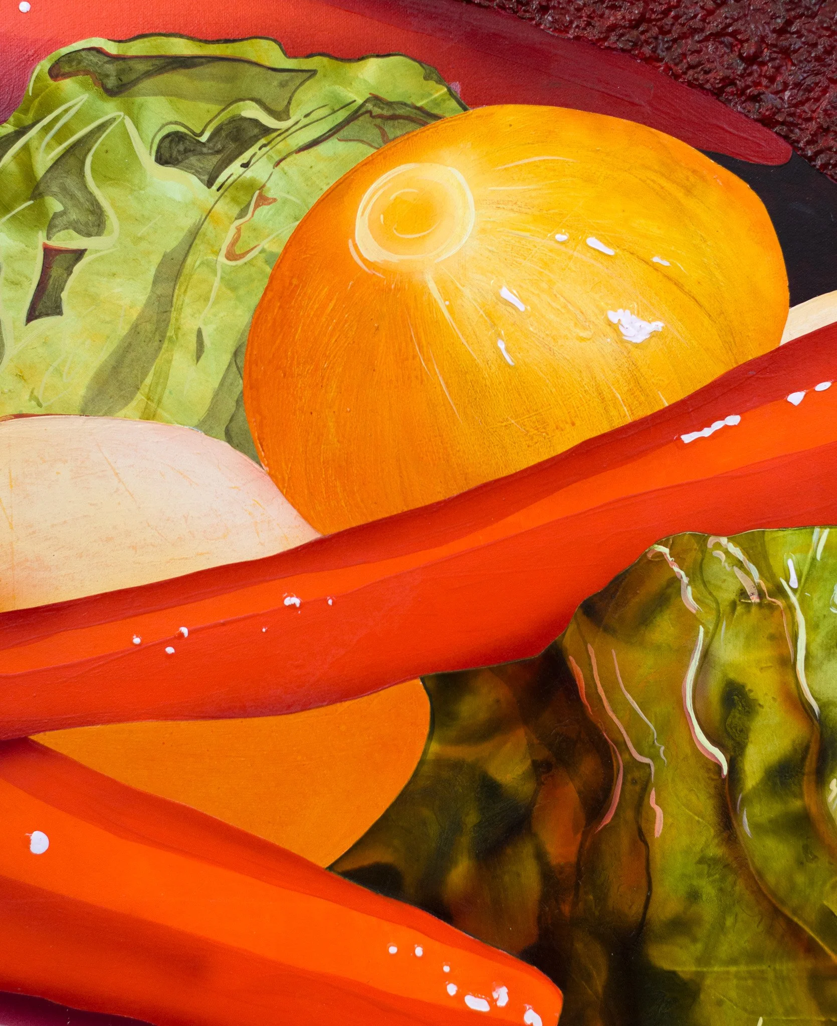 acrylic, acrylic gouache, molding paste, pumice gel, and Roll-A-Tex on canvas, 60 x 48 inches, 2024.